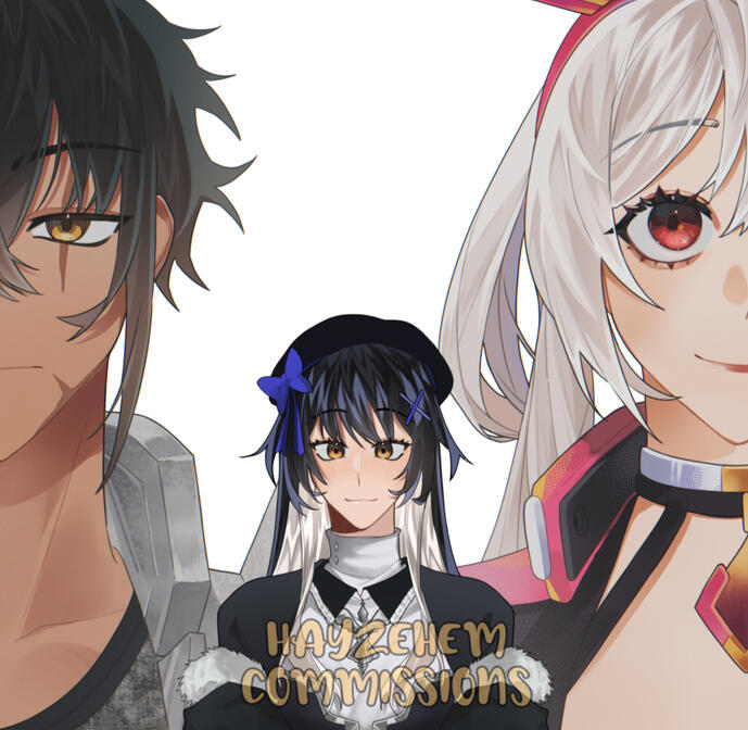 • I DON'T draw heavy backgrounds, mecha, armor, muscular men, furries/ beasts, and heavy gore.